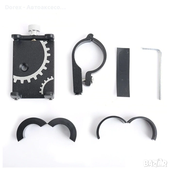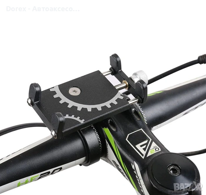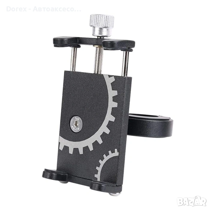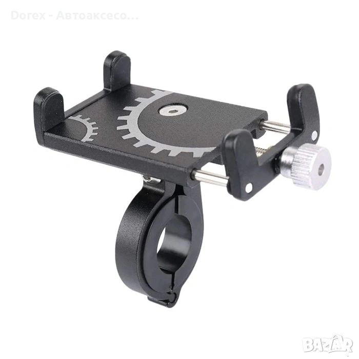 Здрава универсална стойка за телефон, предназначена за монтаж върху кормило на велосипед, мотоциклет, мотопед, ATV, триколка или велоергометър. Осигурява стабилно и надеждно захващане на телефона дори при вибрации и неравен терен.