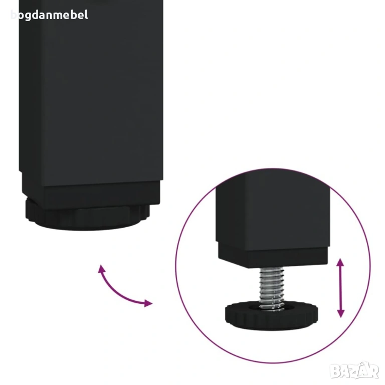Регулируеми крака: Благодарение на регулируемите крака масата за настолна лампа може да стои без затруднения на неравни подове.