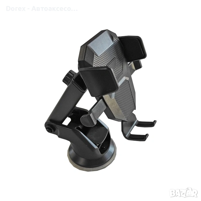 Практична универсална стойка за телефон с вакуумно захващане и удължено рамо за по-добра видимост по време на шофиране. Осигурява стабилно фиксиране и удобен ъгъл на гледане.