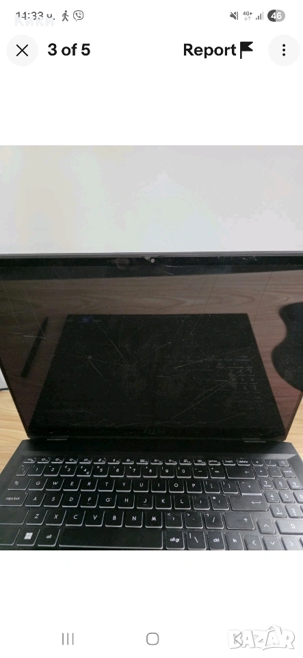 Лаптопа е на година и малко с счупен дисплей вижда се картина има само едно петно в левият ъгъл, но тъча счупен . Като изключим дисплея всичко останало му е перфектно . Може спокойно да се ползва кото , се свърже към друг екран с HDMI. Купуван е за 1800€ . В комплект с оригинално зарядно и писалка. Windows лицензиран ъпдейтнат до последна версия, батерия в пеефектно състояние , ссд също .