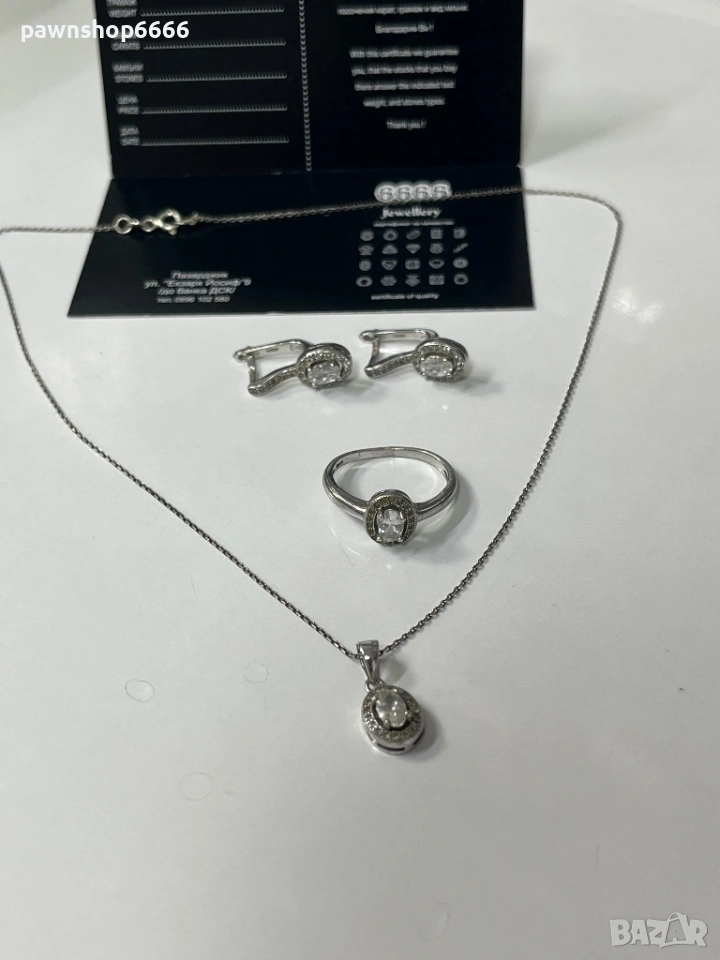 Размер: пръстен : 57 / 18,1 , обици: 2см/0,7см , колие : 40 см
