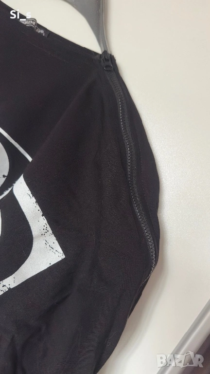 Черна тениска с голям цип на рамото → Обява 53593536