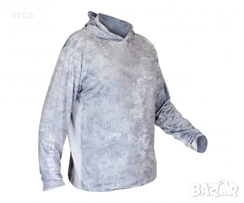 Слънцезащитната блуза SeaBuzz Digital с качулка е създадена за активни риболовци, които прекарват дълги часове край водата. Леката и бързосъхнеща полиестерна материя с UPF50+ осигурява надеждна защита от вредните UV лъчи, като същевременно поддържа тялото хладно и сухо. ⛅