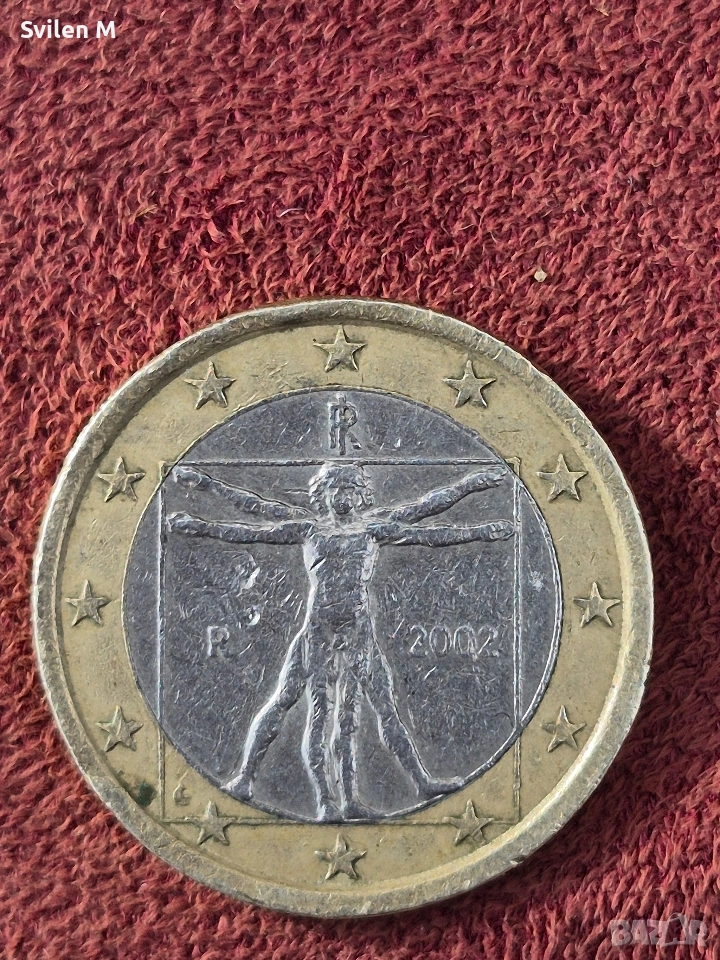 Предлагам монета от 1 евро 2002 г."Ветрувиянският човек",Италия,добро състояние