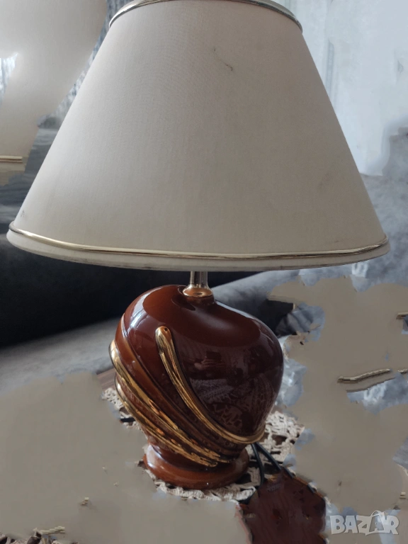 ПРОМО!2за60€ Немски Настолни нощни кристална лампа с абажур от текстил и керамична ръчно рисувана → Обява 53594089
