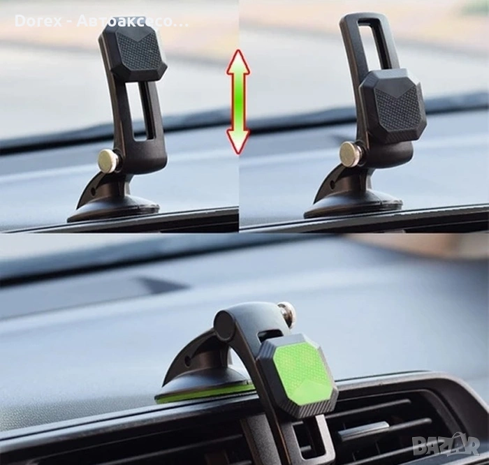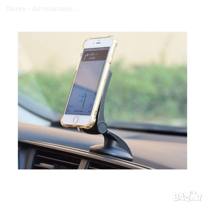 Надеждна универсална стойка за телефон с вакуумно захващане и удължено рамо, осигуряваща по-добра видимост и удобство по време на шофиране.