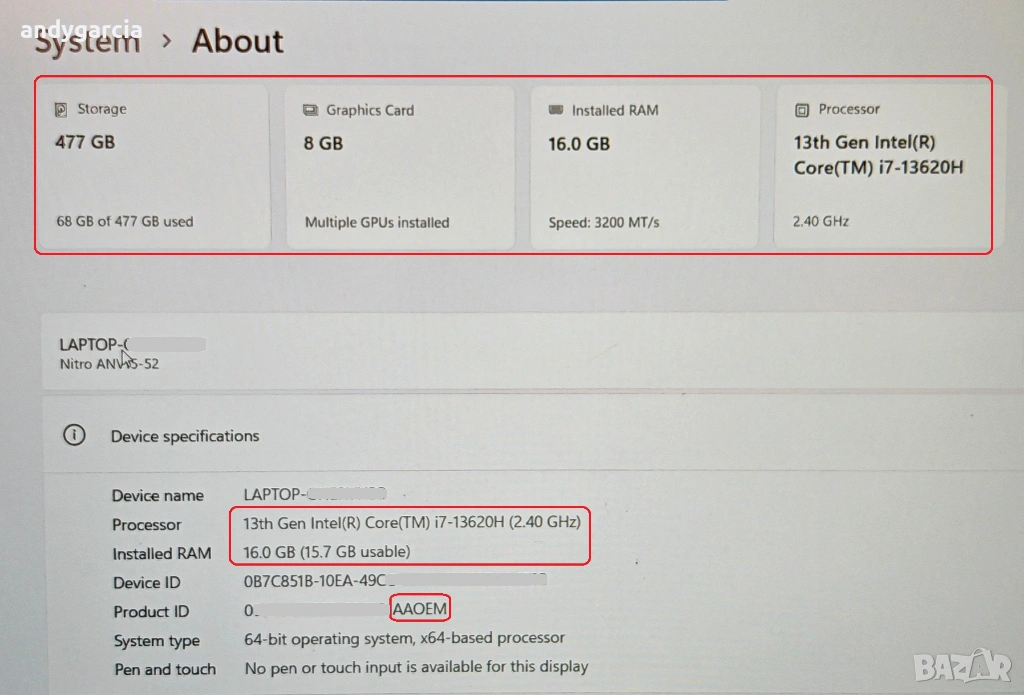 - Мощен процесор Intel Core i7-13620H (1.80 - 4.90 GHz, 24 MB cache) с 10 физически ядра и 16 нишки.