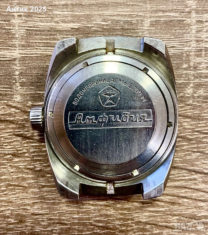 Оригинален мъжки часовник „Амфибия“, произведен в СССР – легендарен дайвър модел на завода Восток. Надежден механичен механизъм, 18 камъка.