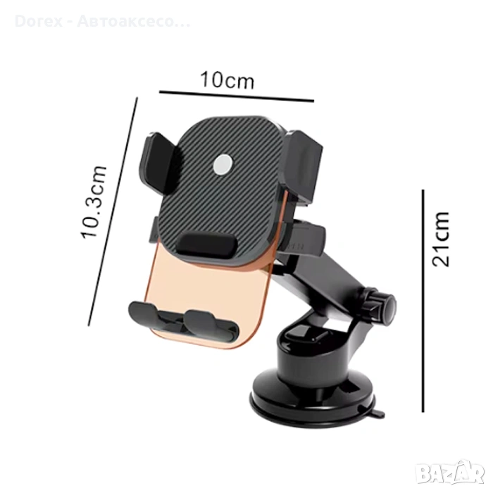 Мощната вендуза позволява надежден монтаж върху предното стъкло или други гладки повърхности, без да оставя следи. Стойката се отличава с елегантен технологичен дизайн и блестяща текстура, която придава модерен вид на интериора.