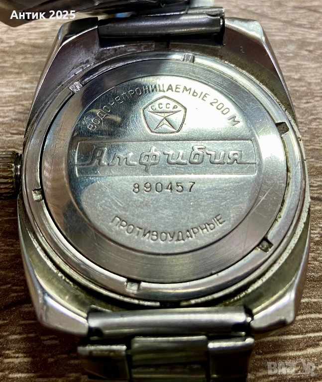 Восток Амфибия“, произведен в СССР. Класически дайвърски модел с водоустойчивост до 200 метра.