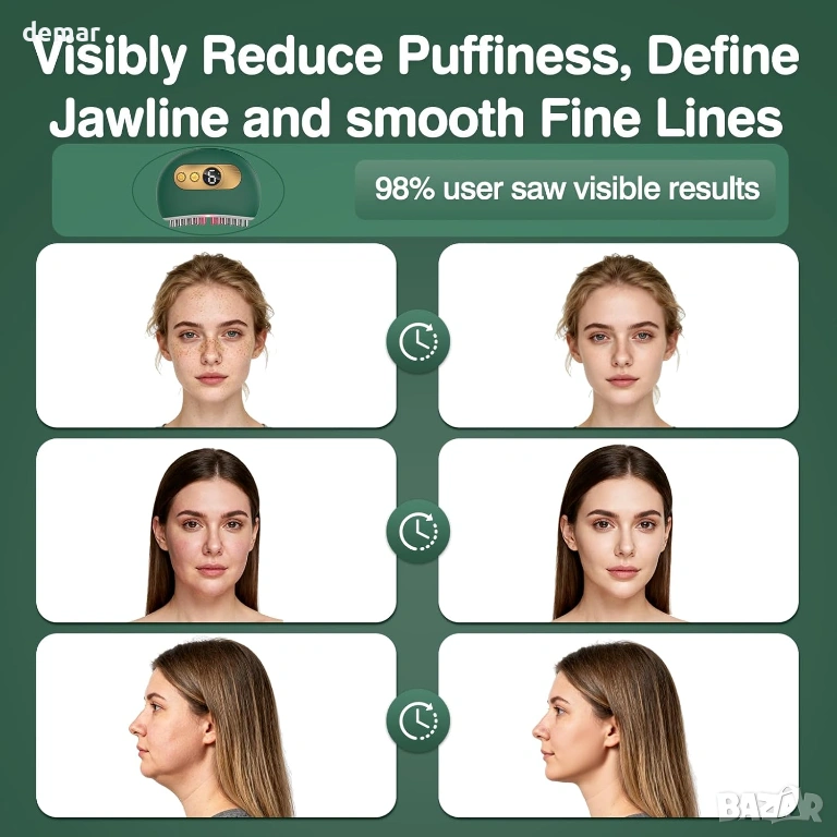 Този усъвършенстван електрически масажор за лице и шия комбинира импулсен режим, високочестотна вибрация, микротокова технология и успокояваща топлинна терапия, за да подобри кръвообращението, да отпусне мускулите на лицето и челюстта и да намали подпухналостта и задържането на вода за по-скулптуриран и сияен външен вид. Проектиран да контурира линията на челюстта и да се насочи към проблемите с двойната брадичка, той поддържа лимфния дренаж и помага за стягане и тонизиране на кожата, като същевременно минимизира появата на фини линии. С девет регулируеми настройки за интензивност за вибрации, топлина и импулсни функции, той предлага напълно персонализирано лечение, подходящо както за начинаещи, така и за опитни потребители. Ергономичният извит дизайн пасва удобно на контурите на лицето, а компактната му, презареждаща се конструкция с 15-минутно автоматично изключване го прави безопасен, преносим и удобен за употреба у дома, в офиса или по време на пътуване.