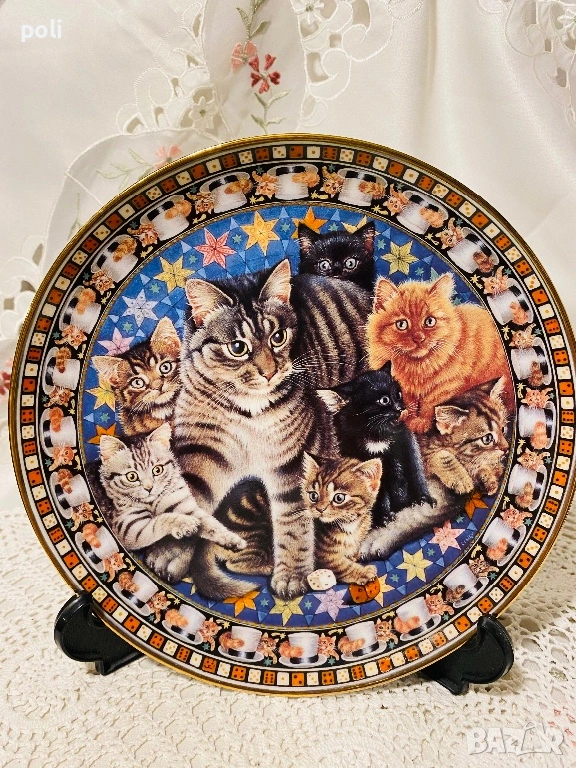 Колекционерска порцеланова чиния за стена Danbury Mint “Cats “. Диаметър 21 см . Цена 20€ .