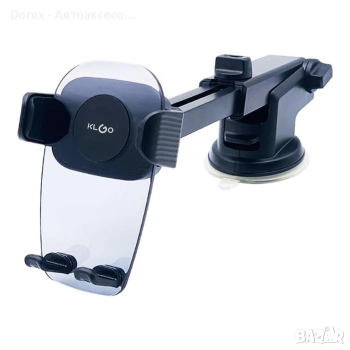 Удобна и здрава универсална стойка за телефон с вакуумна вендуза, подходяща за монтаж върху предно стъкло, табло или друга гладка повърхност. Осигурява стабилно фиксиране и комфорт при шофиране.