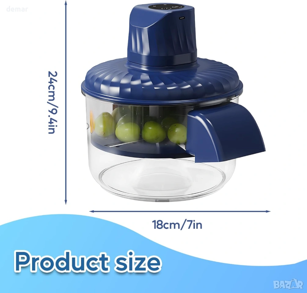Акумулаторна електрическа белачка за плодове, задвижвана от 50W мотор, която премахва люспите на грозде или домати за около 20 секунди, подобрявайки ефективността при домашна или лека търговска употреба в кухнята. Тя разполага с прости бутони за обелване и изваждане, които автоматично освобождават обелената месест плод без ръчна работа, докато високоскоростното въртящо се обелване и елементът за обелване от неръждаема стомана помагат за задържане на повече пулпа и намаляване на отпадъците. Проектирана с издръжлива ABS и неръждаема стомана, тя включва батерия от 1500mAh, която се зарежда за 2-3 часа и осигурява до около един час непрекъсната употреба, в зависимост от честотата. Всички подвижни части позволяват бързо разглобяване и цялостно почистване за подобрена хигиена, въпреки че основният модул не трябва да се изплаква с вода, за да се избегнат проблеми със зареждането или производителността.