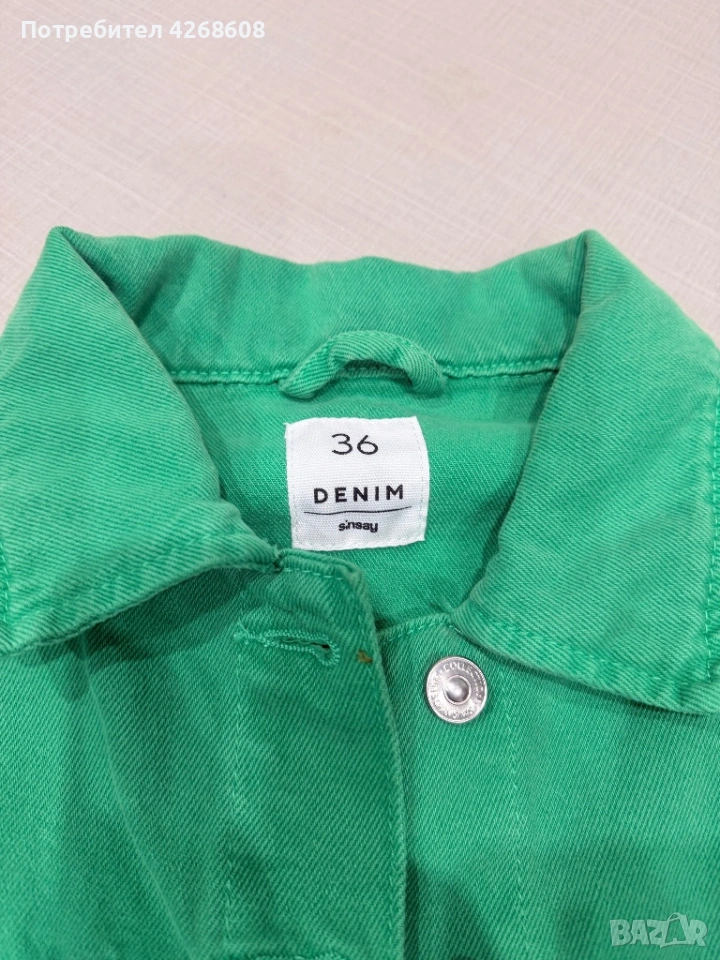 Дънково зелено късо яке на марката Sinsay, размер 36, носено само веднъж.