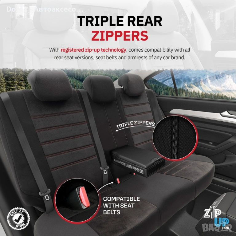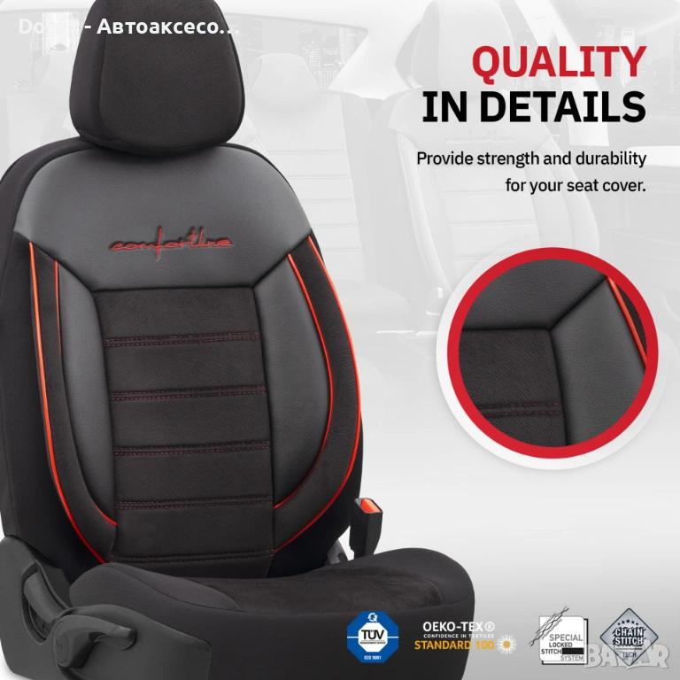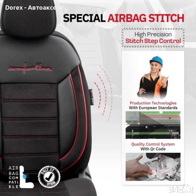 -Съвместими със странични Airbag системи благодарение на специален предпазен шев.