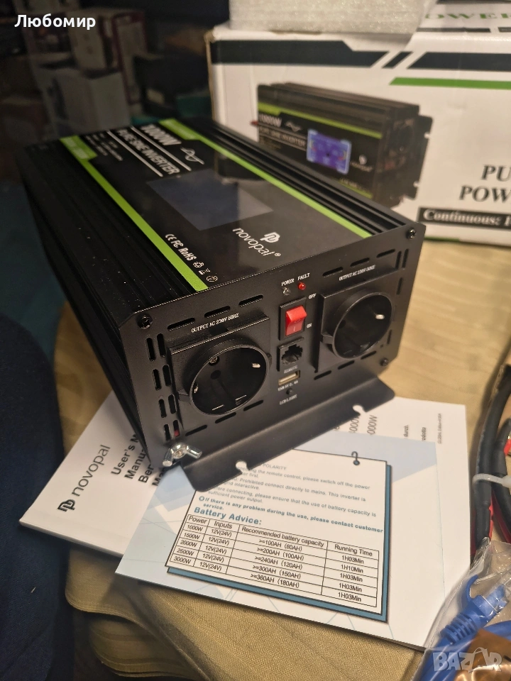 NOVOPAL 1000W Чиста синусоидална инверторна система 12V към 230V 240V Автомобилен конвертор