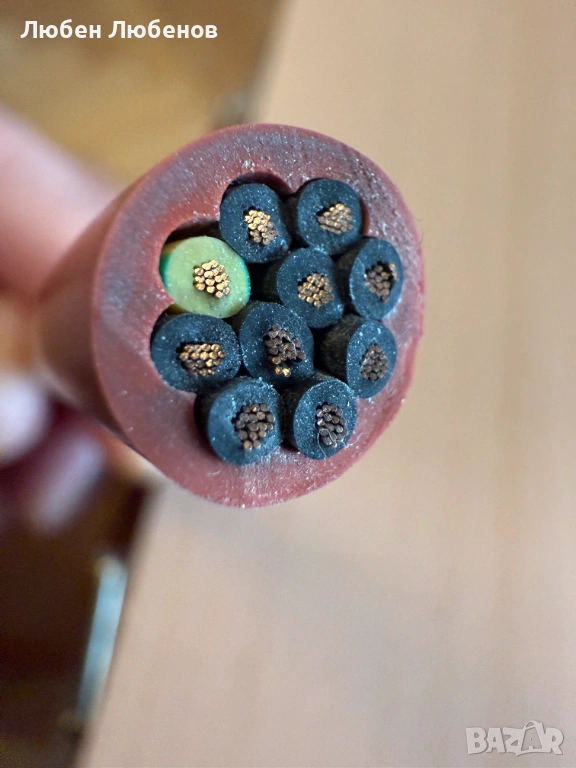 9 черни жила с маркирани цифри и едно жълто/зелено жило.