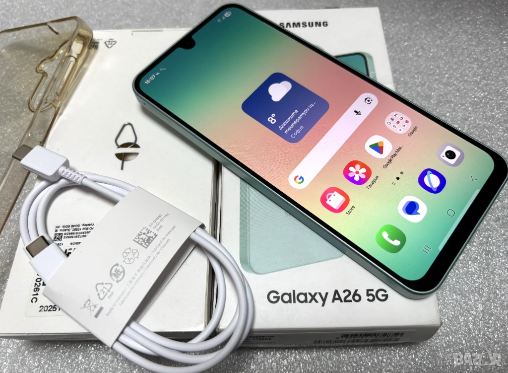 КАТО НОВ! Смартфон Samsung Galaxy A26 5G, 6.7'', 6GB/128GB, Mint → Обява 53595813