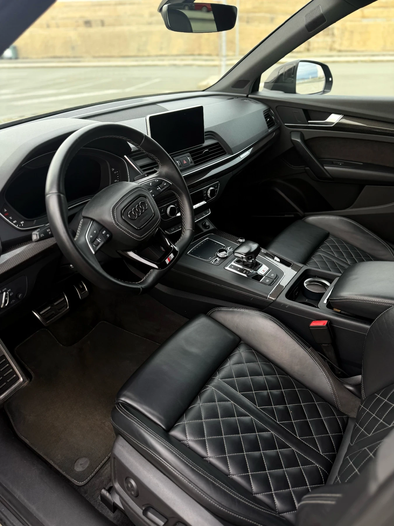Продавам Audi SQ5 бензин, 2018 г. , в цвят Nano Gray, с Black Optic пакет, в много добро техническо и визуално състояние. Автомобилът е личен, без тунинг, с реален пробег и поддържан навреме. Основни данни: Година: 2018 Двигател: 3. 0 TFSI V6 бензин Мощност: 354 к. с. Задвижване: quattro (4x4) Скоростна кутия: Автоматик (Tiptronic) Пробег: 191 000 км реални Оборудване и екстри: - Nano Gray (оригинален Audi цвят) - Black Optic пакет (черни външни детайли) - S-line интериор и екстериор - Кожен спортен салон с diamond stitching - Електрически седалки - Панорамен покрив - Virtual Cockpit - Навигация (MMI) - Адаптивно окачване (Drive Select) - LED фарове - Червени спирачни апарати - Keyless Go / безключово палене - Парктроници + асистент за самопаркиране - Охлаждащи и затоплящи поставки за чаши - Оригинални алуминиеви джанти - Климатроник - Bluetooth / USB Автомобилът е напълно обслужен, всичко по него работи, готов за оглед и тест.