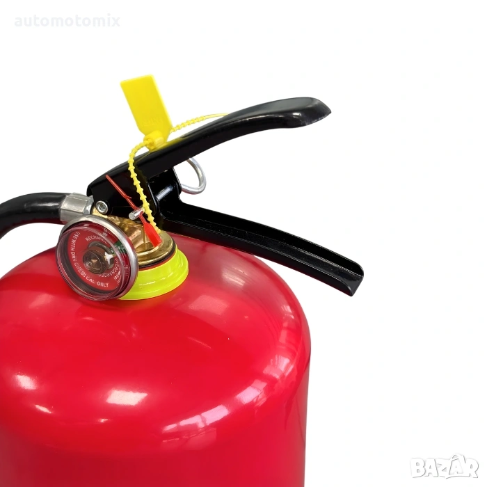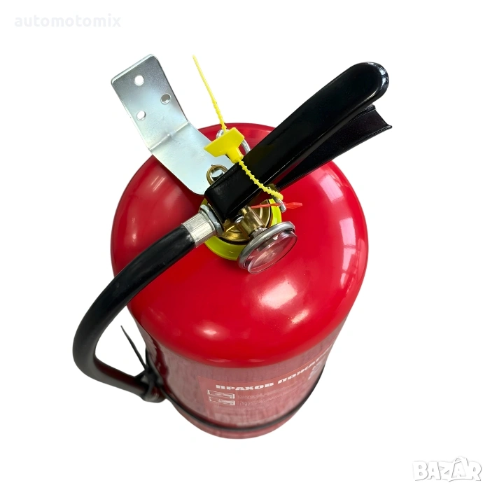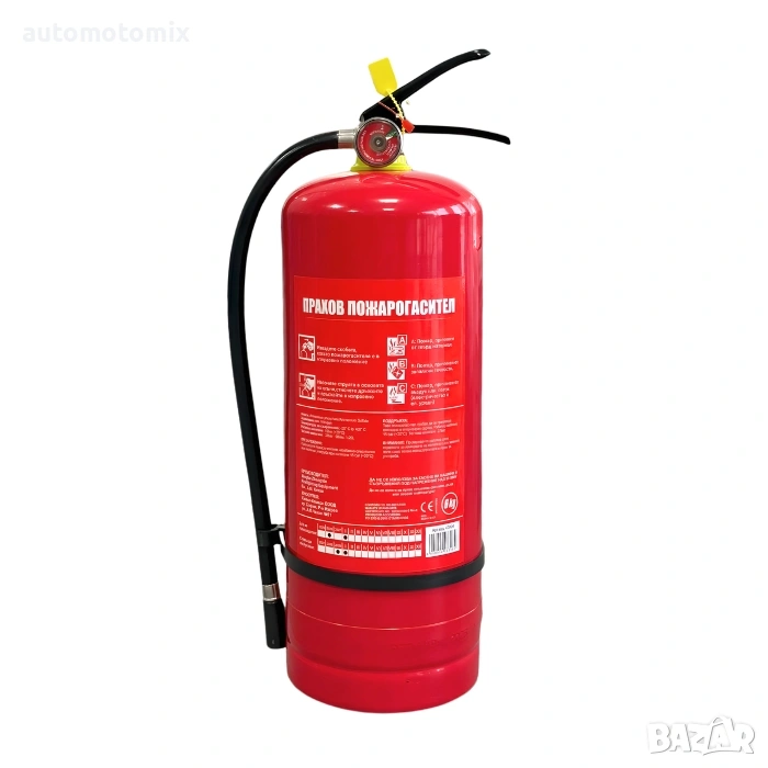 Прахов пожарогасител с вместимост 6 кг, предназначен за ефективно гасене на пожари от клас A, B и C, подходящ за използване в автомобили, складове, търговски обекти, производствени помещения, офиси и обществени сгради.