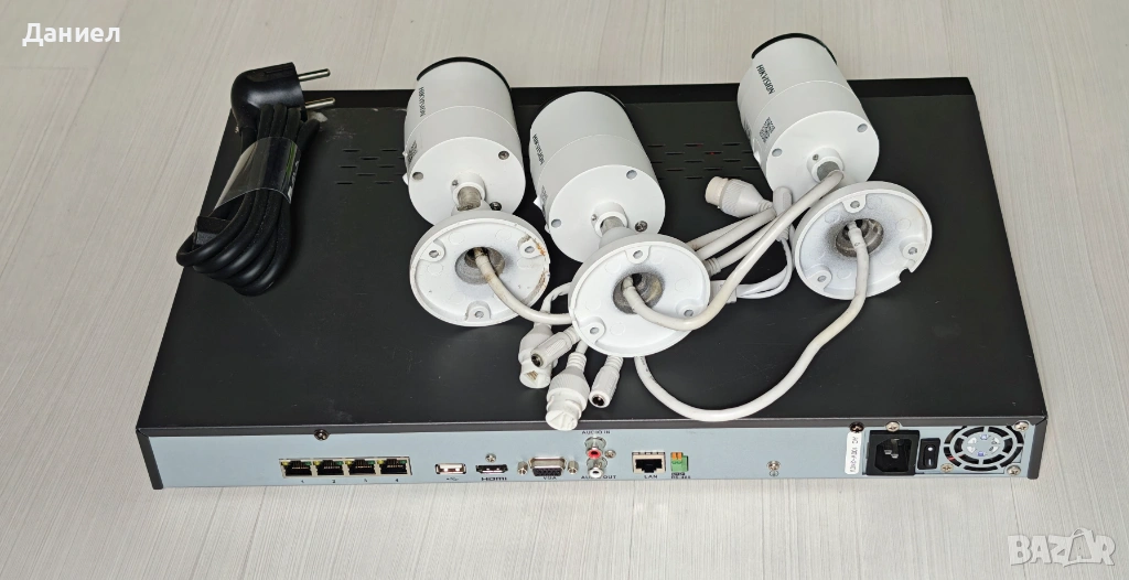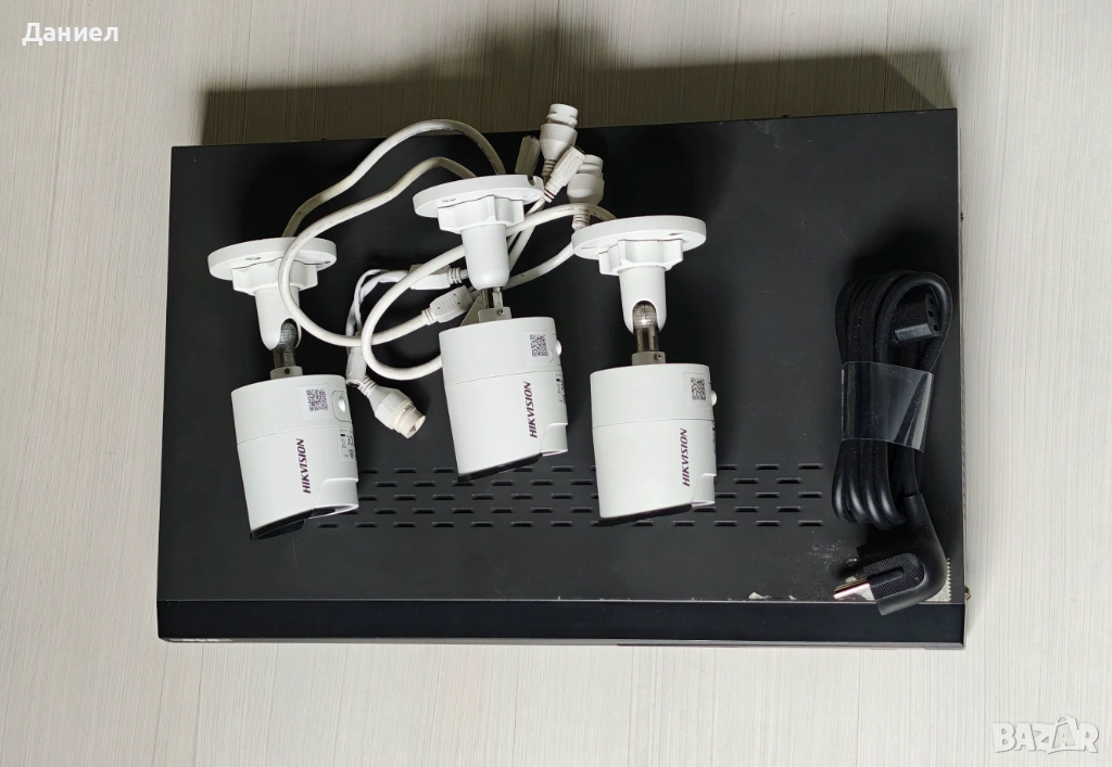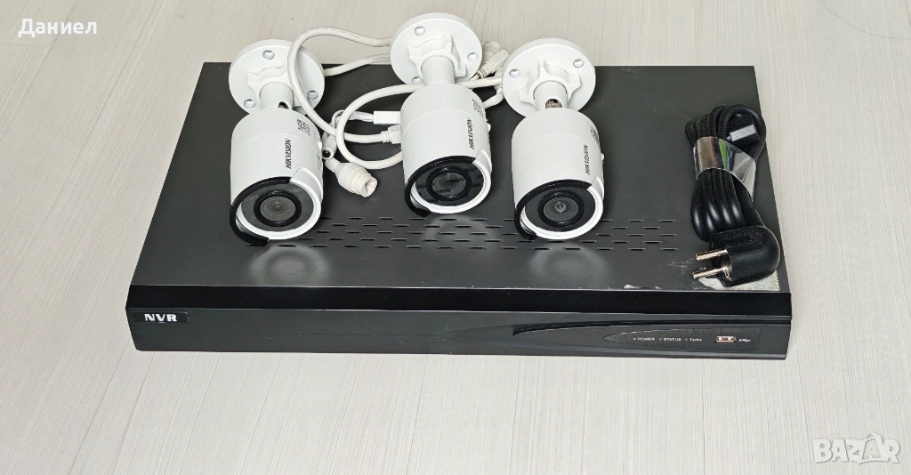 Продавам употребяван бюджетен комплект за видеонаблюдение с NVR и 3 IP камери с марката Hikvision. Това е всичко, което ви трябва (освен кабели за камерите) за да започнете да наблюдавате и записвате видео от вашия обект.