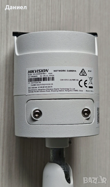 - 3 броя IP цифрови булет камери Hikvision DS-2CD2035FWD-I с разделителна способност 3MP и 4mm широчина на лещата.