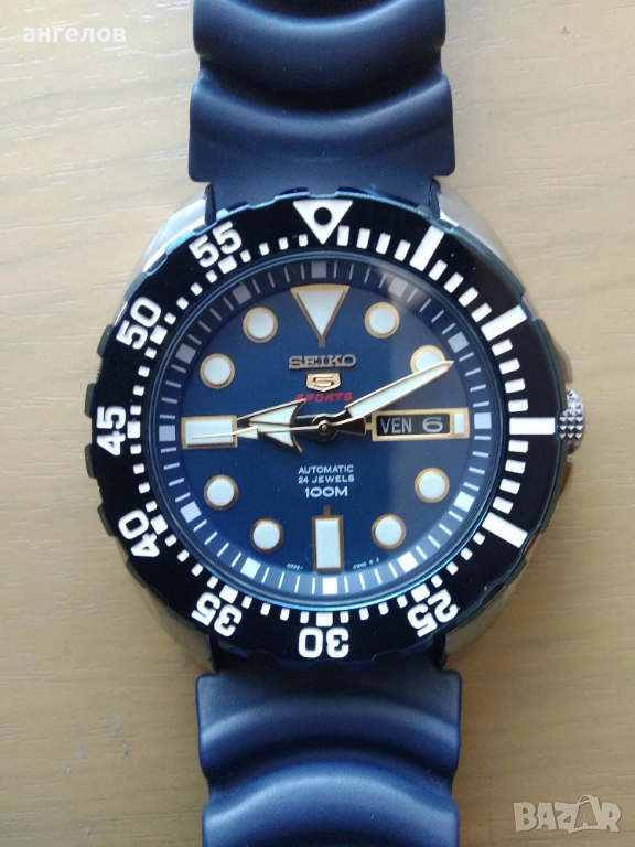 Сеико автоматик почти нов уникална изработка,24 камъка 100 метра гумената каишка е в отлично състояние