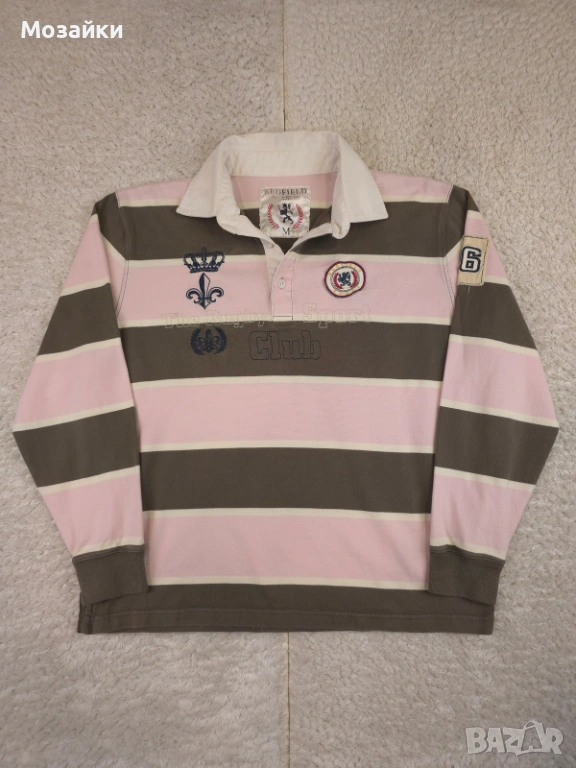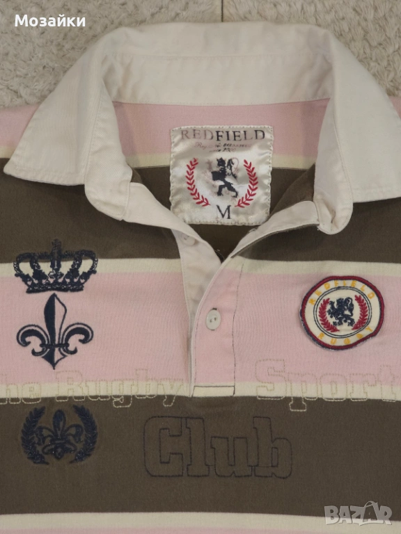 red field, rugby shirt, rugby polo, polo, vintage, old money, preppy, casual, striped, embroidered, premium cotton, m size, мъжка блуза, мъжка поло блуза, райе, designer style