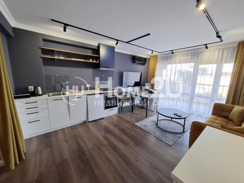 Разпределение: просторна дневна с кухненски кът, коридор, две спални, баня с душ кабина и подово отопление. Продава се напълно оборудван.