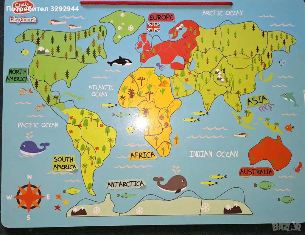 Магнитна детска карта/пъзел на света → Обява 53595924
