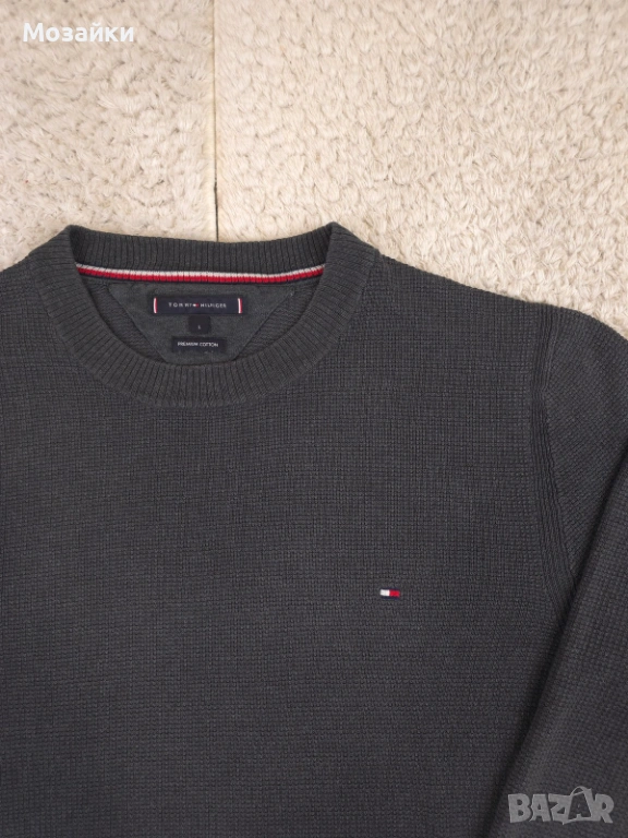 Това е точно онзи тип Tommy Hilfiger пуловер, който изглежда скъп и поддържан, без да крещи с огромни лога. Направен е от 100% Premium Cotton – не боде, не запарва и стои супер приятно на тялото.