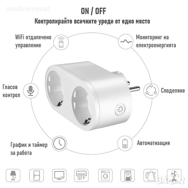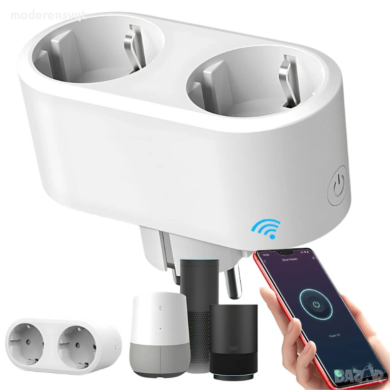 Умен двоен контакт с Wi-Fi, интелигентен таймер 16a, приложение