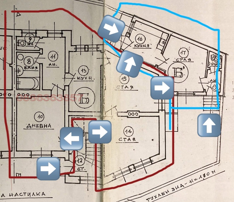 Продавам имот на първи етаж с обща застроена площ 155кв.м, състоящ се от апартамент, сутерен и пристроена самостоятелна къща, заедно с двор в идеални части. Имотът е част от масивна, здрава къща, с обновени инсталации и отличен потенциал както за семейно жилище, така и за инвестиция.