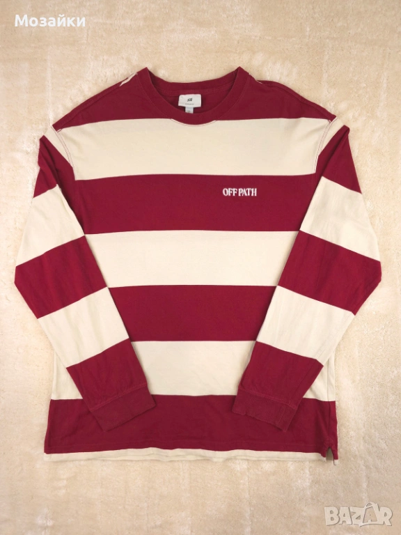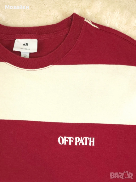 Добавете класически акцент към гардероба си с тази блуза на H&M в актуалния за сезона десен на широки райета. Изработена от 100% памук, материята е плътна, дишаща и изключително мека на допир – идеална за целодневно носене. Свободната "Relaxed Fit" кройка осигурява комфорт и модерен силует, който не ограничава движенията. Дизайнът е допълнен от минималистичен надпис "OFF PATH", който придава дискретен характер на дрехата. Това е перфектната възможност да вземете марков артикул с премиум усещане на малка част от оригиналната му цена!