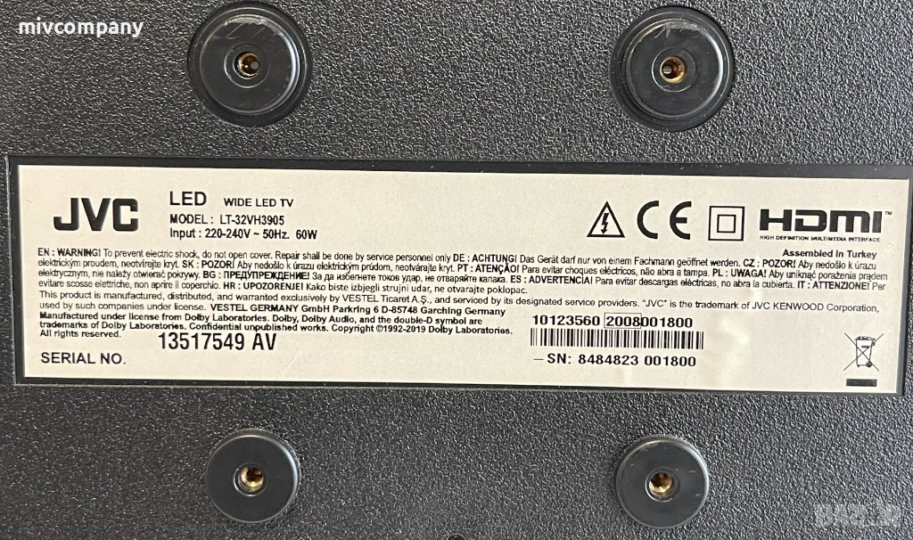 Телевизор 32'JVC  LT-32VH3905, снимка 1 - Телевизори - 53596121 Телевизор 32'JVC  LT-32VH3905, снимка 2 - Телевизори - 53596121 Телевизор 32'JVC  LT-32VH3905, снимка 3 - Телевизори - 53596121 Телевизор 32'JVC  LT-32VH3905, снимка 4 - Телевизори - 53596121 1/4
