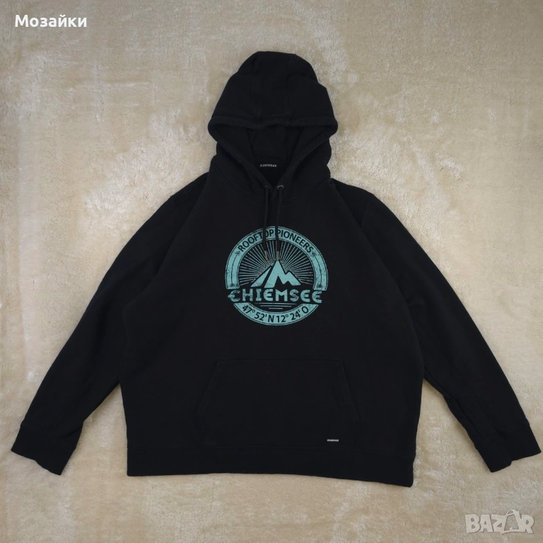 chiemsee, chiemsee hoodie, organic hoodie, gots, french terry, combed cotton, outdoor style, streetwear hoodie, graphic hoodie, black hoodie, size xxl, oversized hoodie, sustainable fashion, мъжко худи, органично худи, худи xxl