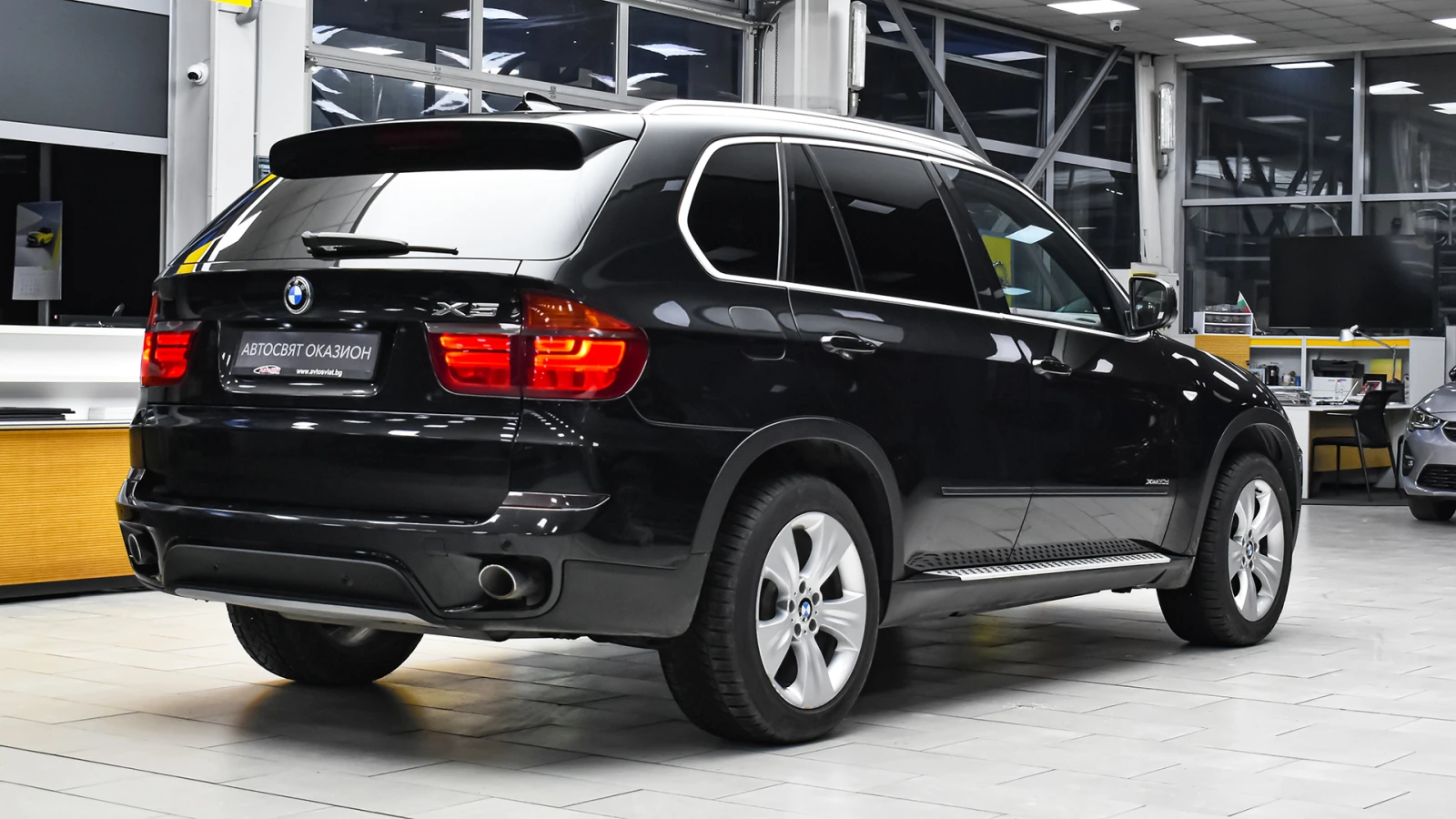 Автосвят ООД - официален представител на Opel и Mazda, предлага на Вашето внимание клиентски автомобил BMW X5 xDrive30d Steptronic Допълнителни услуги: - лизинг; - сътрудничество при регистрация; - възможност за обратно изкупуване; - посредничество при застраховане; - посредничество при завеждане на щети при застрахователя. 475 Black Sapphire черен металик LUCX Кожен салон " Nevada/Oyster" 255 Спортен кожен волан 2LL BMW 19" Алуминиеви джанти тип V-spoke 335 2PA Секретни болтове 302 Алармена система 330 Пакет Sports 358 Комфортно предно стъкло 3AH Камера за заден ход с гледка отгоре 3AP Предно стъкло със сив слънцезащитен кант 3MA Релси за багаж на покрива, полиран алуминий 3MB Външни декоративни елементи алуминий BMW Individual Aluminium satinated 402 Панорамен люк 413 Разделителна мрежа в багажника 417 Механични сенници за задните странични стъкла 430 Вътрешно и странични огледала с автоматична функция против заслепяване 456 Комфортни предни седалки, електрически, с памет 488 Лумбална опора на предните седалки 493 Пакет за съхранение 494 Отопление на предните седалки 4AZ Вътрешни декоративни елементи Bamboo grain dark 502 Система за почистване на фаровете 508 Контрол на дистанцията при паркиране (PDC), предна и задна броня 521 Сензор за дъжд 522 Ксенонови светлини 534 Автоматична климатична инсталация 544 Криуз контрол със спирачна функция 563 Пакет светлини 609 Навигационна система Professional 614 Подготовка за интернет 615 Extended BMW Online Information 644 Подготовка за Bluetooth 6AA BMW Телеуслуги 6FL USB/audio interface 775 Таван в цвят антрацит BMW Individual За контакти: 0888 414 107 Борислав Русев - шоурум Русе 0885 003 477 Росен Вълев - шоурум Русе 0882 902 081 Нина Мучинова - шоурум Русе 0885 186 862 Иван Гърков - шоурум Плевен 0893 032 035 Марио Янчев - шоурум Пловдив Код на обявата XM-IT38720