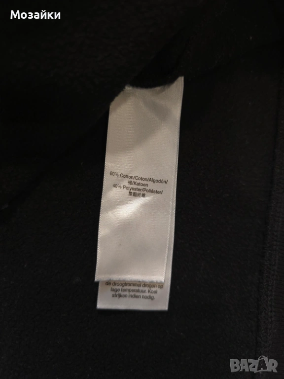 Материята е 60% памук / 40% полиестер – плътна, удобна и практична за носене, държи форма и изглежда подредено. Логото е много чисто и контрастно, прави дрехата да изглежда скъпа и маркова още отдалеч.