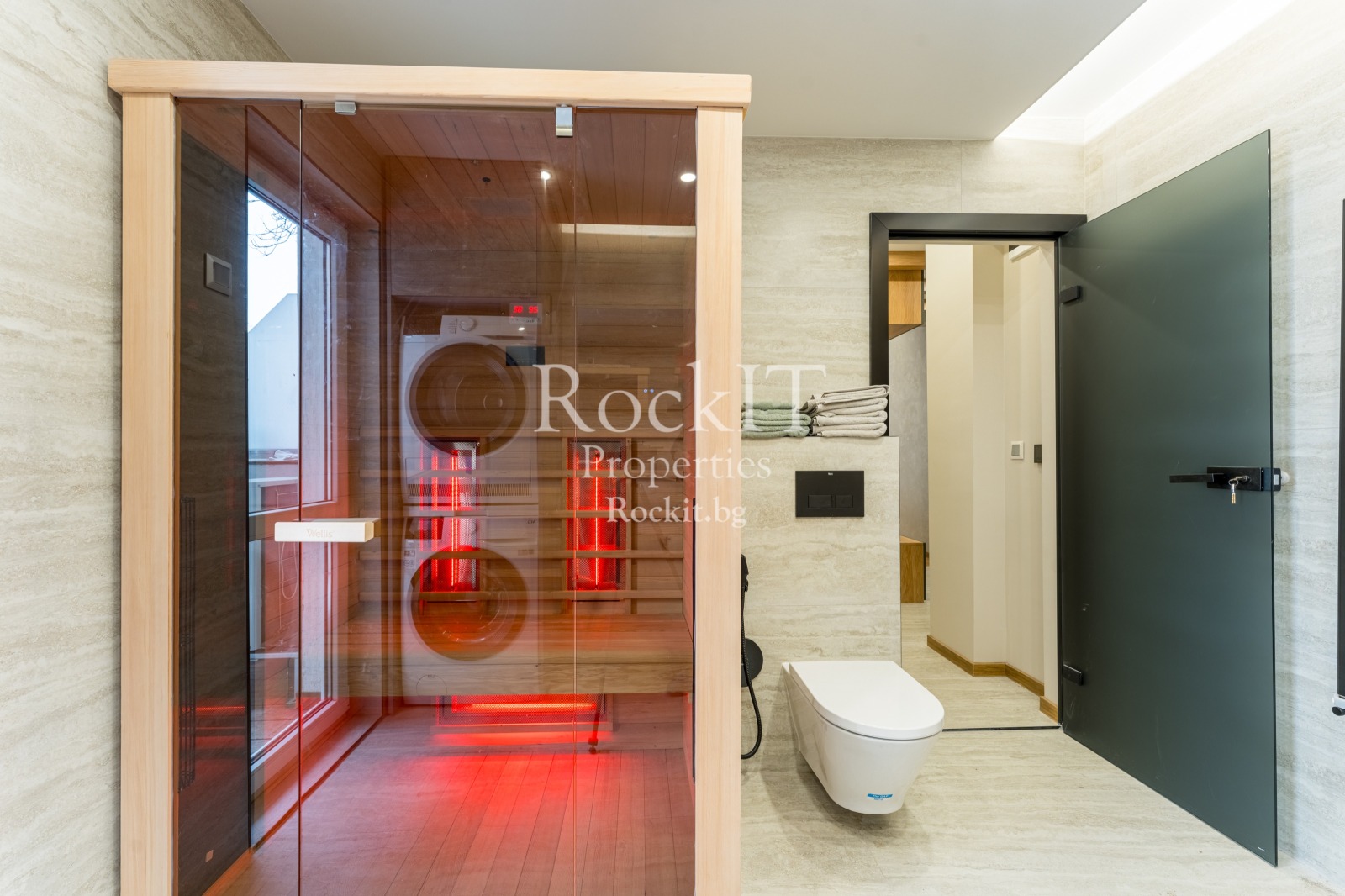-голяма баня с тоалетна. В нея е разположена и инфрачервена сауна. Към банята има тераса, където може да се постави ледена вана.