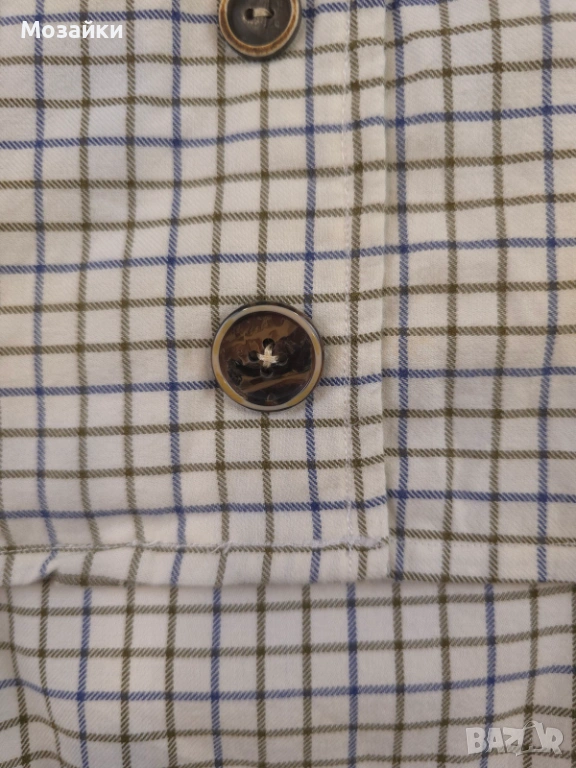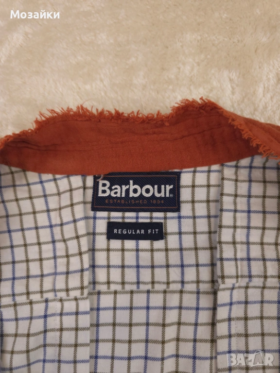 Много интересен и рядък Barbour модел – не е стандартна риза, а по-скоро cropped блейзър/овършърт с копчета, който стои супер “premium” и различно. Барбур е марка, която се търси точно заради качеството и британския класически стил, а тук получаваш оригинален артикул в състояние като ново.