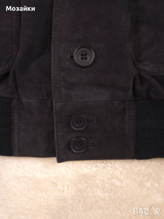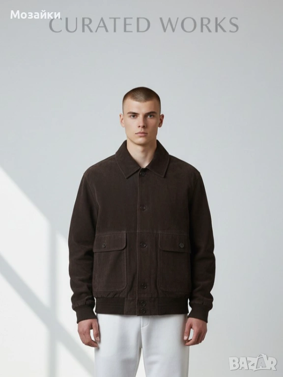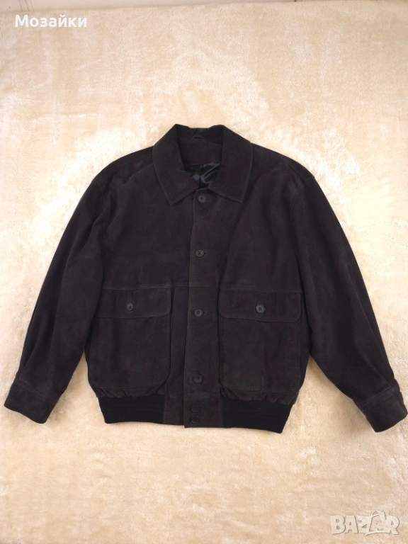 Кожата е с премиум финиш и изглежда луксозно, без да е лъскава или “евтина”. Кройката е бомбър с рипс в долната част, големи джобове отпред и чист силует, който стои мъжкарски и много стилно.