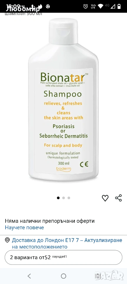 шампоан Boderm bionar за псориазис или себореен дерматит 300 мл