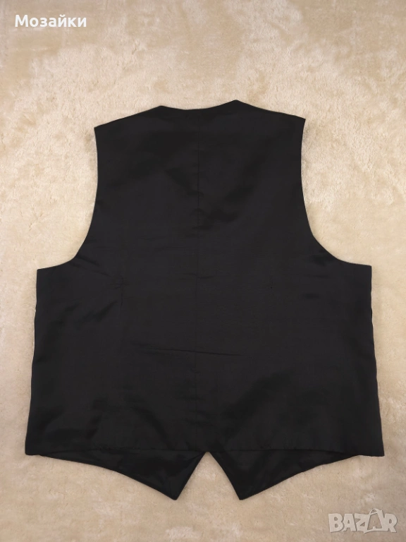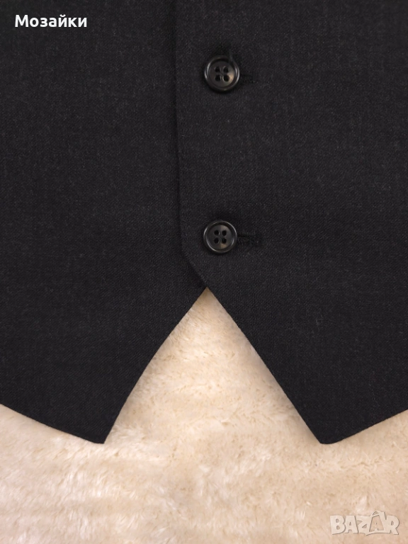 Класически мъжки елек, изработен от 100% virgin wool – материя, използвана в високия клас костюми и tailoring. Платът е плътен, елегантен и държи форма, а хастарът от полиестер осигурява комфорт при носене.