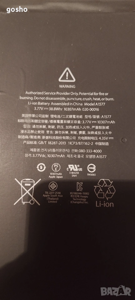 Батерия за Apple iPad Pro 12.9 (2015) / A1577, оригинална (OEM), 10307 mAh , снимка 1 - Други - 53596628 Батерия за Apple iPad Pro 12.9 (2015) / A1577, оригинална (OEM), 10307 mAh , снимка 2 - Други - 53596628 Батерия за Apple iPad Pro 12.9 (2015) / A1577, оригинална (OEM), 10307 mAh , снимка 3 - Други - 53596628 1/3
