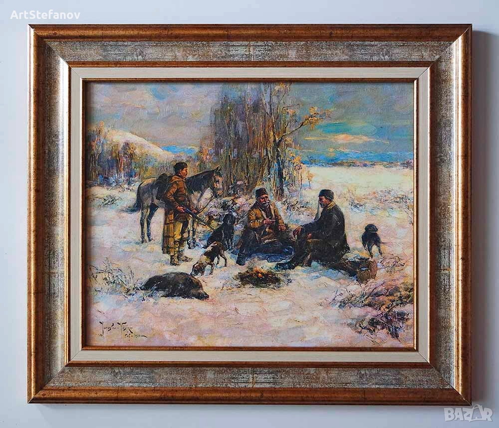 Картината ”След лов” на Ярослав Вешин е арт - принт репродукция с размери 40см / 47см. Ново.