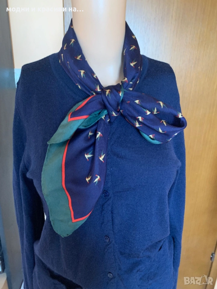 Жилетката в комбинация с копринен шал на мига придобива по- елегантен вид. На някои от снимките е комбиниран с шал в подобна тоналност, за да се види ефекта.