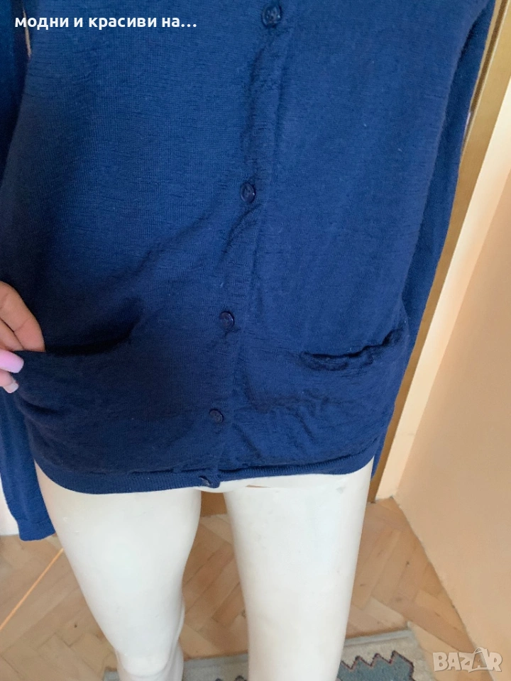 Жилетката е на датския бранд Samsøe & Samsøe. Скандинавско качество, изчистен дизайн, универсален цвят, семпъл, непреходен модел. Жилетката в по тялото, закопчава се с малки деликатни копчета, с имитация на малки джобчета в долната част. Изработена изцяло от мерино- много качествена, фина материя, подходяща за студените дни. Отличен изолатор на студа като същевременно материята е много фина и нежна. Няма го неприятния ефект на боцкането.