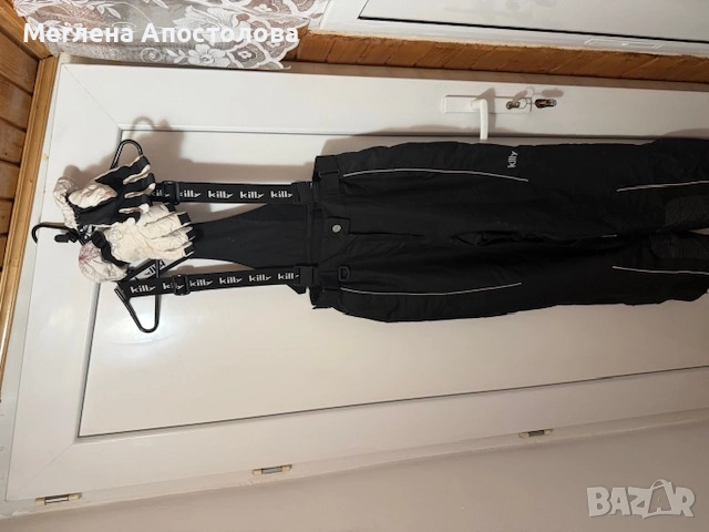 Луксозен дамски комплект за ски или други зимни спортове, състоящ се от гащеризон, яке и ръкавици на фирмата Killy, размер М, водонепромокаема и дишаща материя, облечен само веднъж.
