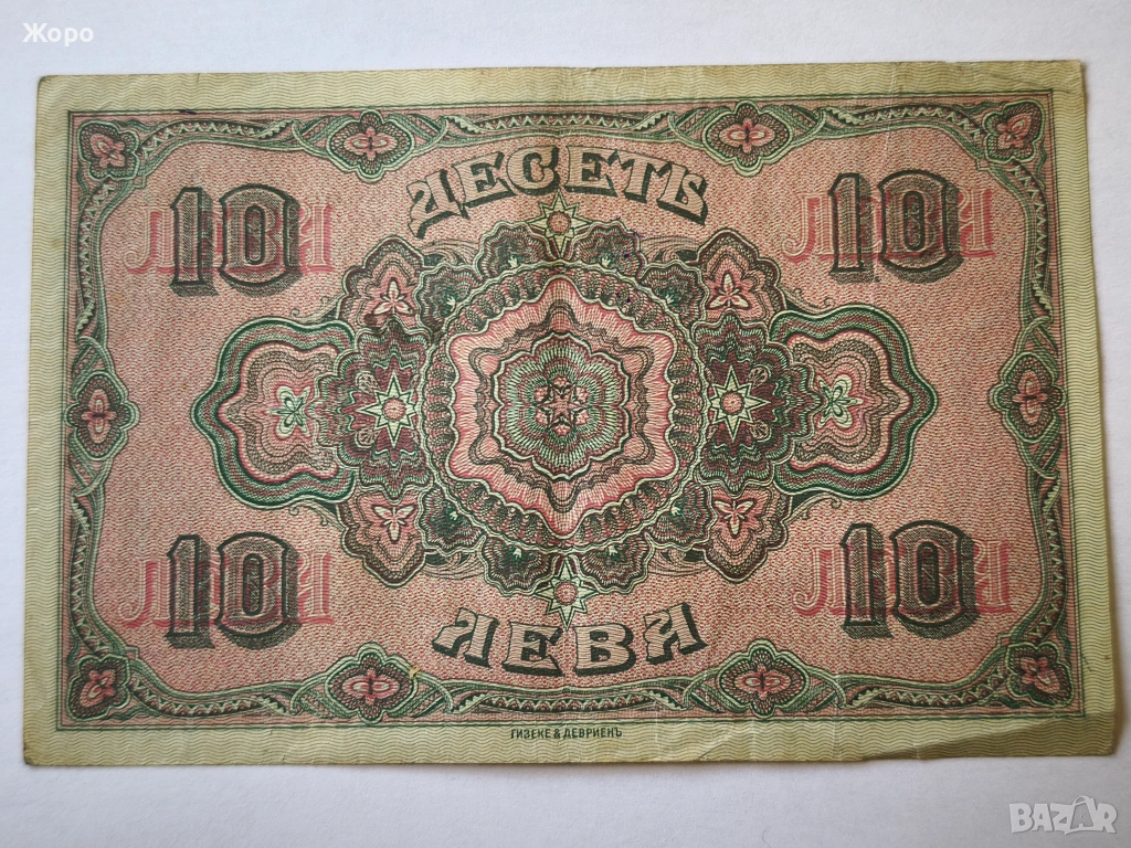 10 лева 1917 година България - златни - (печат Сръбска окупация). Получавате сниманата банкнота.